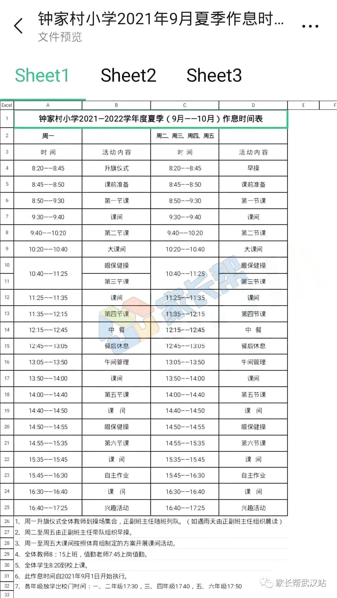钟家村小学丨2021-2022学年小学作息时间安排